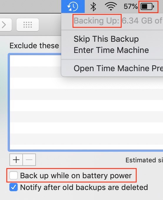I've got "Back up while on battery power" checkbox turned off but Time Machine still creates backups (see screenshot). Any ideas how this can be fixed?