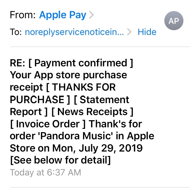 I received an email from Apple Pay regarding a large charge to my iTunes account. I didn’t authorize a purchase. Also, when I check my account purchase history, this “charge” is not listed. Not sure what to do.