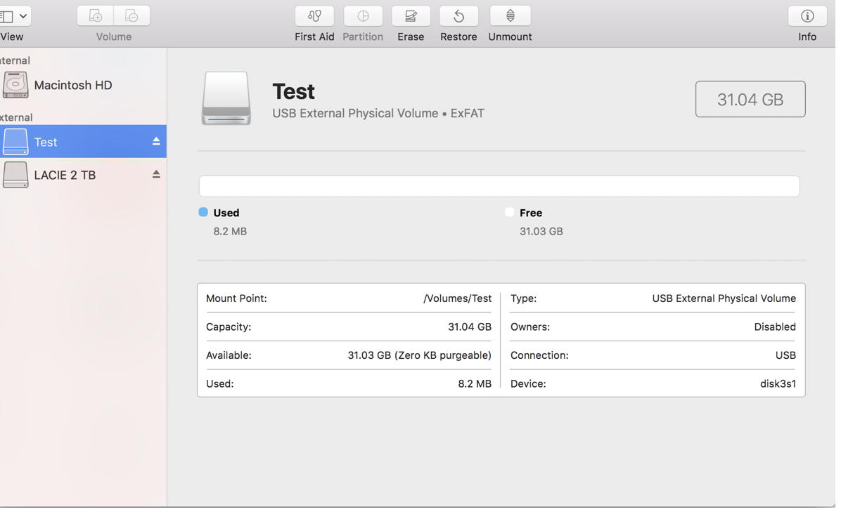 I have a 32 GB Thumbdrive that I formatted to ExFAT.