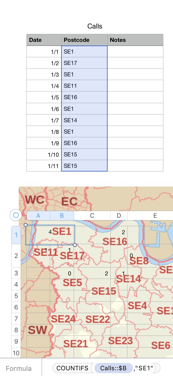 Hi we are a UK service company, we log service calls within numbers via a simple spreadsheet via postcodes, we are wanting to add a map to the spreadsheet in order to add the postcodes we visit on service calls so we can see the hotspots on the map where we travel to
