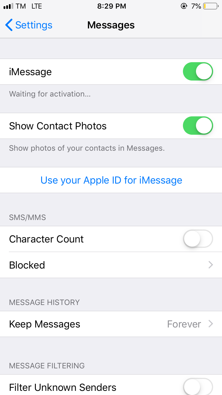 My iMessage keeps saying “Waiting for activation” every time I turn it on. I’ve looked everywhere but I seem to have not found a solution.
