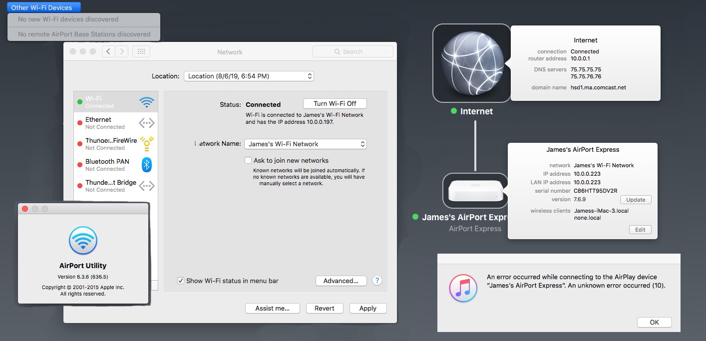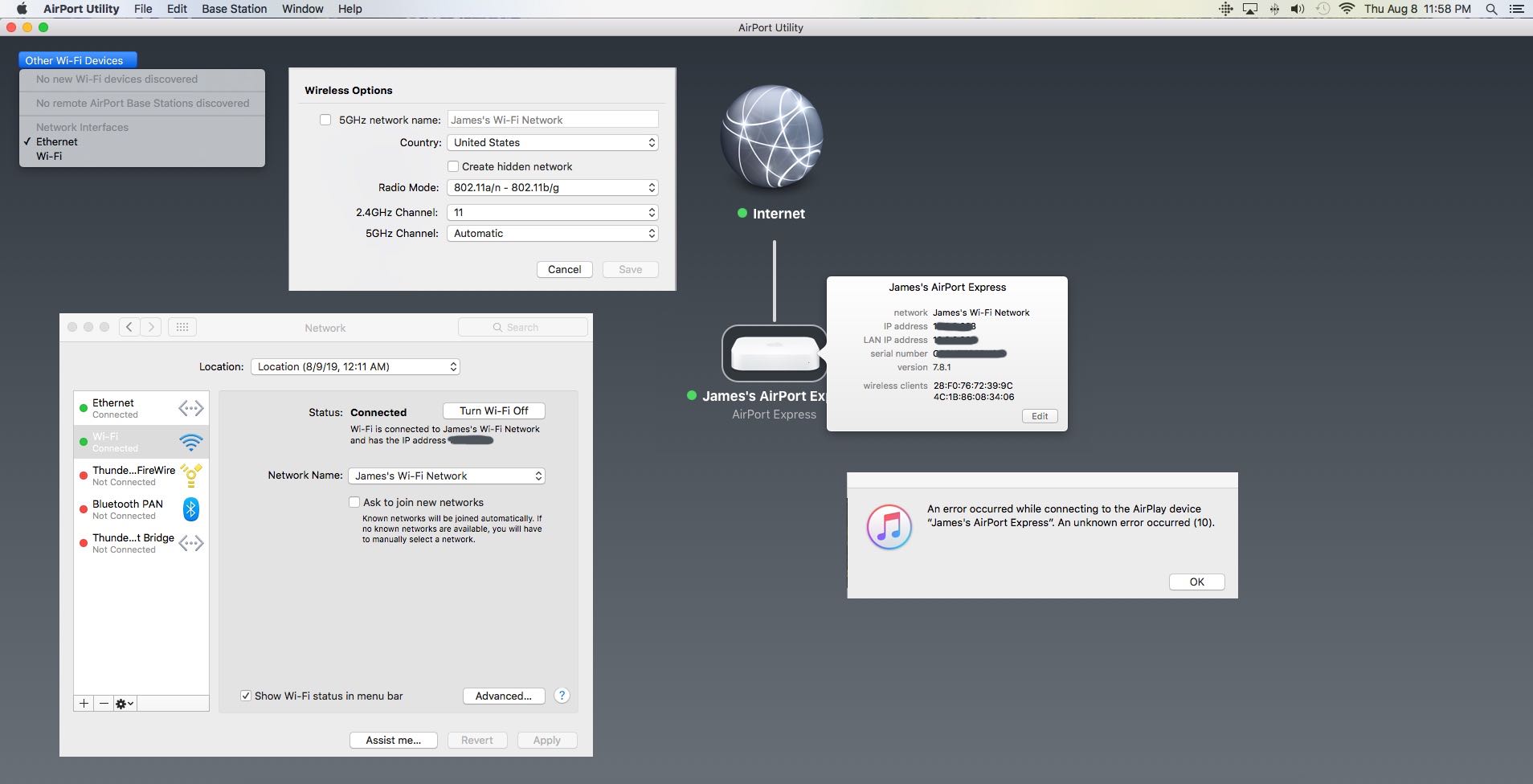 iTunes Not Connecting to Airport Express; Airport Express Reboot