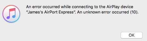 I'm having an issue with iTunes (version 12.6.2.20) connecting to Airport Express (7.8.2). I'm using an iMac that's running OS X El Capitan version 10.11.6