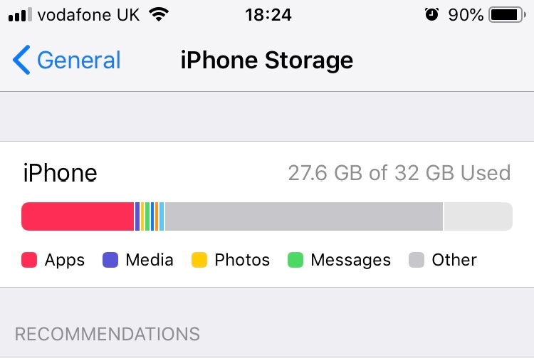 •Connecting the phone up to itunes on a PC (which i’ve been told may help offload unused data sometimes)