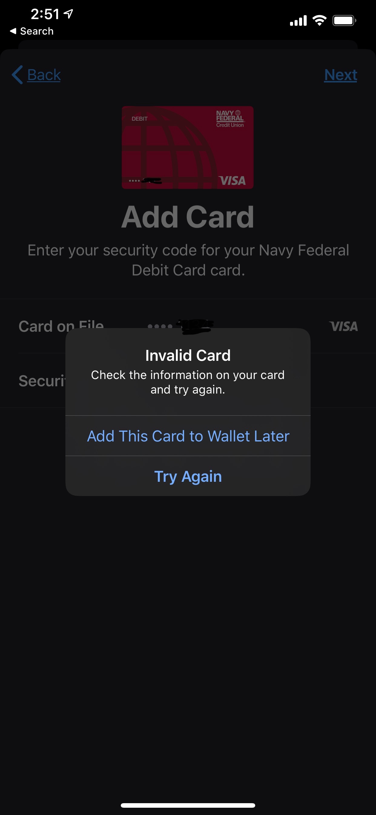 WALLET APP WANTS ME TO ADD OLD CARD BY VERIFY CVV