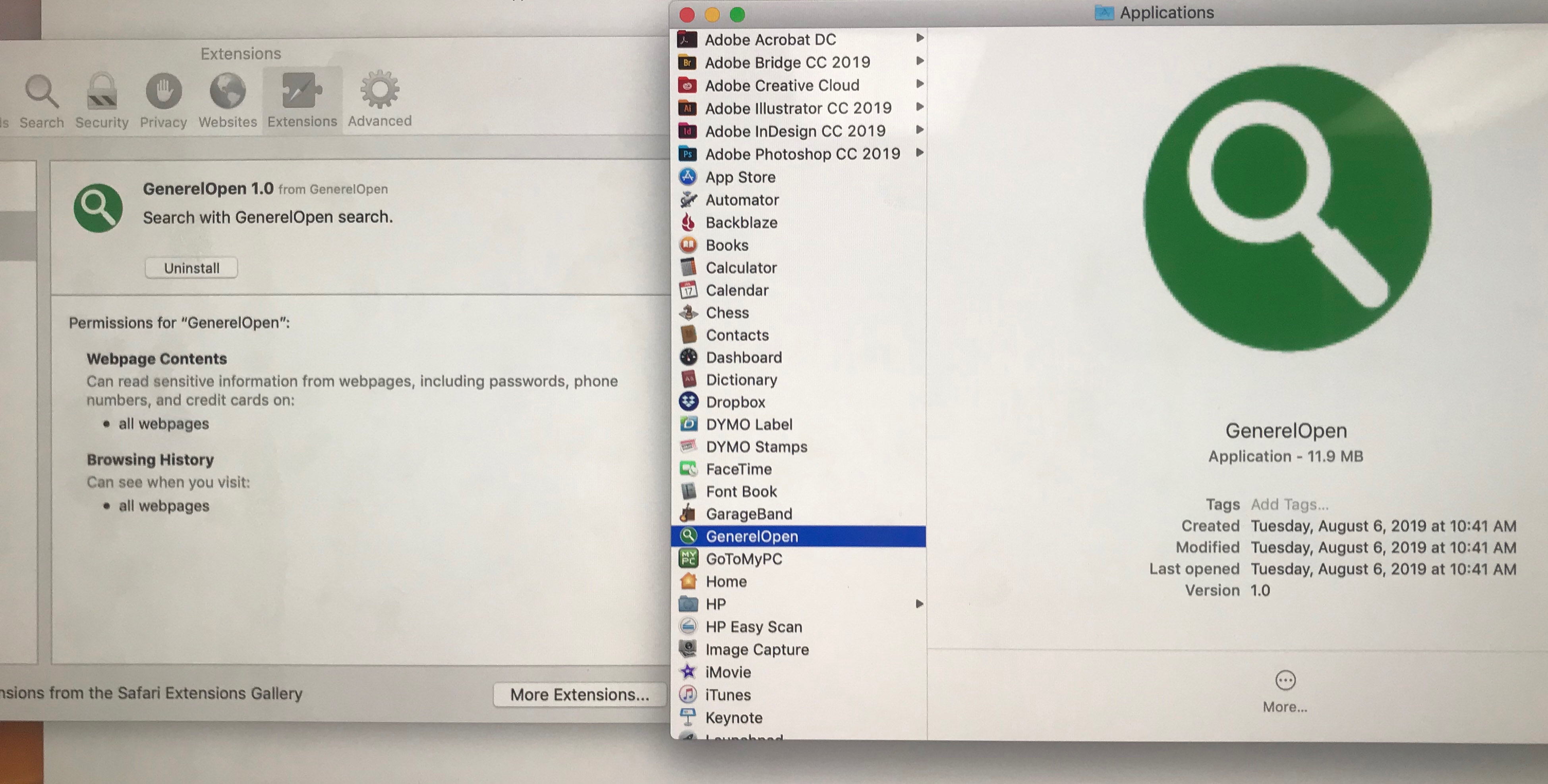 URGENT Just discovered a new Mac virus: GeneralOpen 1.0 Safari Extension
