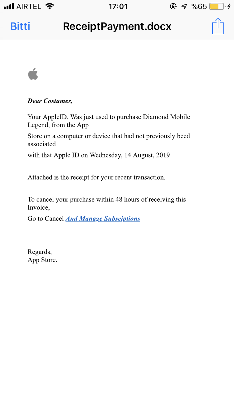 İ got an email about shopping from appstore and they sent me the receipt. But i didnt make any shopping.İ wonder that this is a fake mail. What do you think guys?