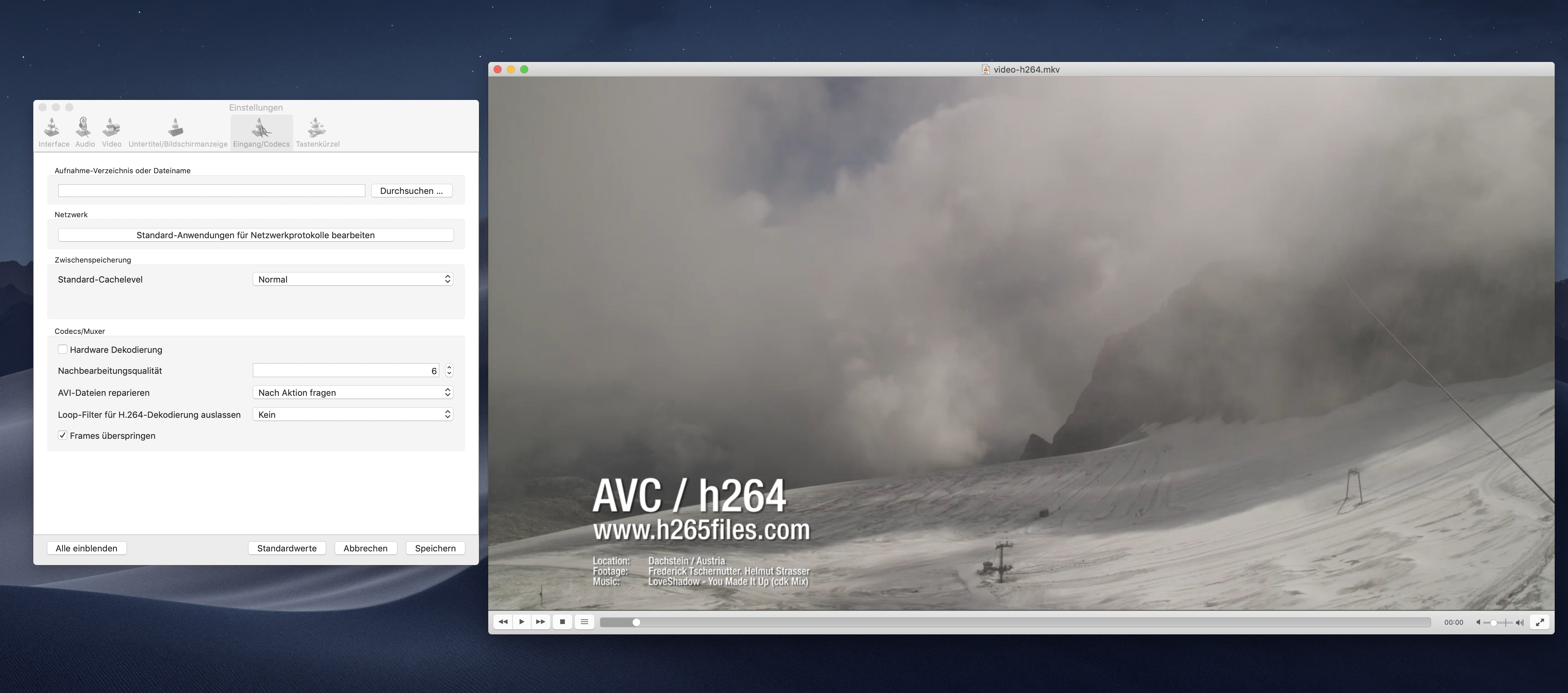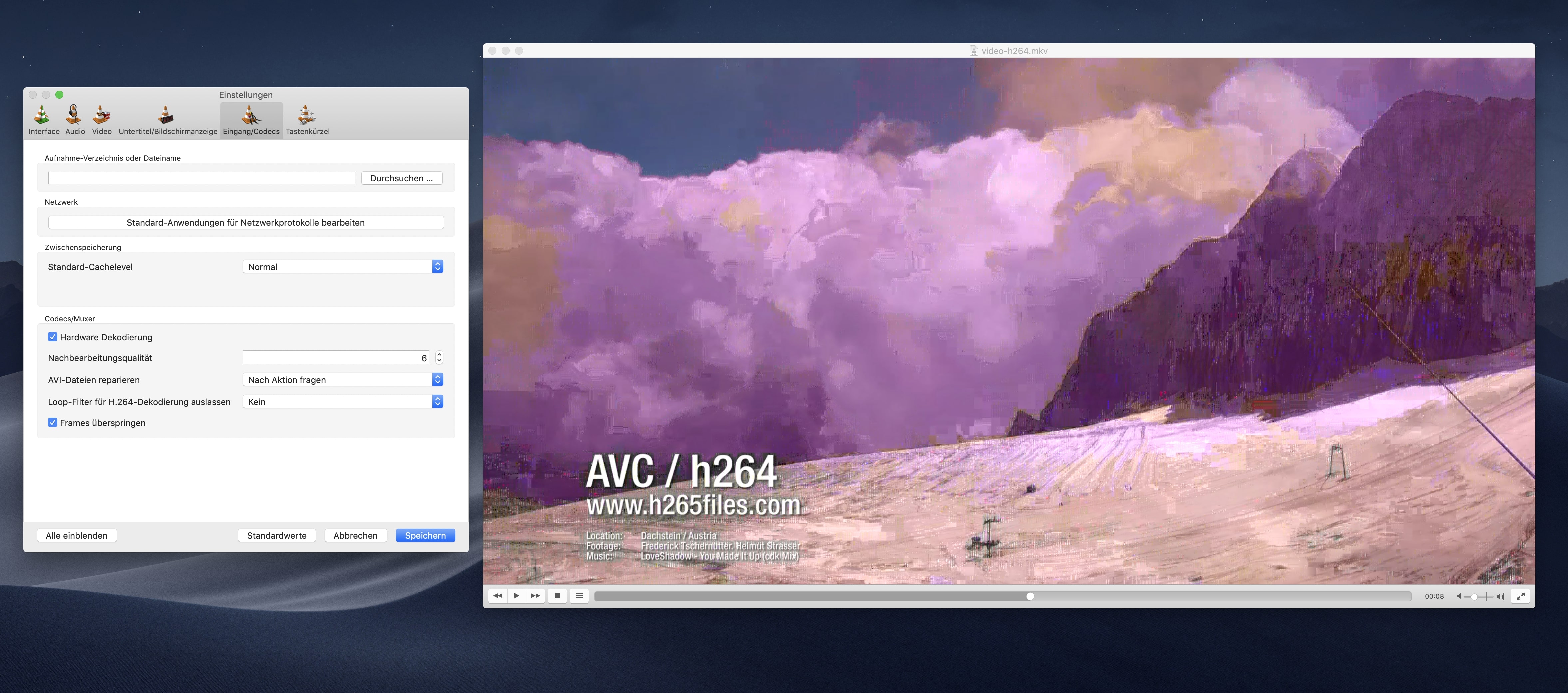 vlc player with hardware decoder activated (deactivated hardware decoder has no issue)