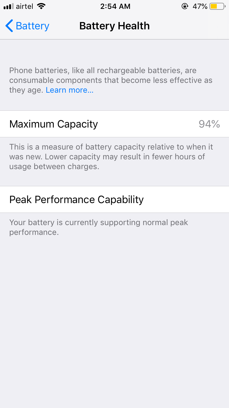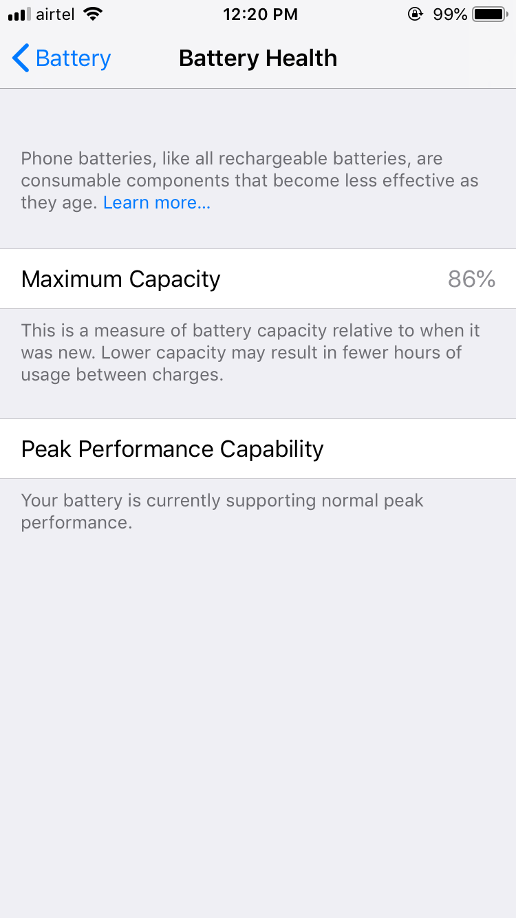 I replaced my iPhone 6s battery two months ago. It only got fully drained twice or thrice. Last week after a full charge i saw it dropped to 98%. I thought it was normal. But yesterday I saw it dropped to 95%. And today after after using few hours it dropped to 94%. I have no idea what’s going on with my iPhone’ battery health. I use it carefully and didn’t even let that fully drain easily. I always connect to the charger when it indicates “20% battery remaining “. And removes it after getting fully charged. Someone please come up with a solution. I’m looking forward for a favorable reply!