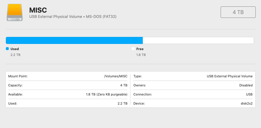 I don't believe macOS can handle more than 2TB on a FAT32 formatted drive.
