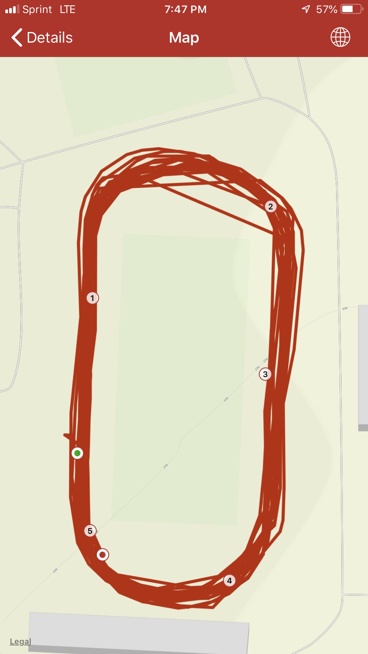 Riddle me this, Apple: how does your Apple Watch Series 3 Nike Plus GPS lose me on a university 400 m track? I kept getting mile notices at wildly different points on this track, and I only diverted once during the second mile (by about 15 m to get water). I thought maybe I was going crazy but then I saw the data broken down by a third party app with mile markers (see photo).