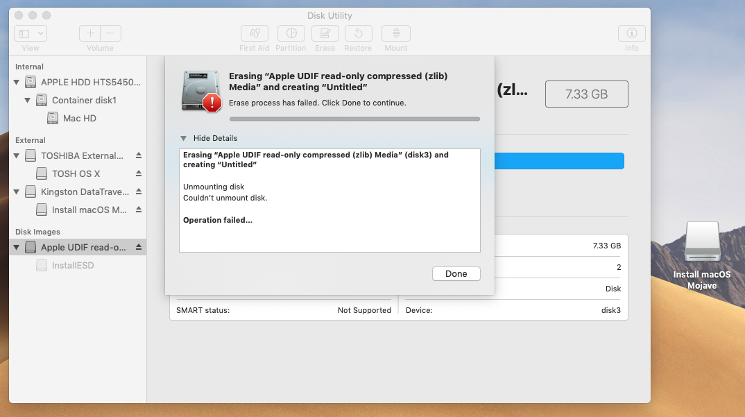 I have tried selecting "Apple UDIF" as shown in the screenshot and also "InstallESD"