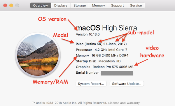 Your grandson needs to do "About this Mac..." from the "Apple menu" at the left end of his iMacs menu bar to get this: