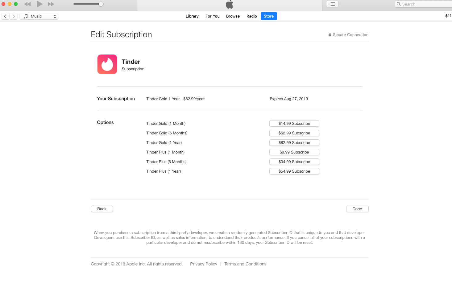 I want to cancel my tinder gold subscription. I don't find cancel tap in my iTunes settings.