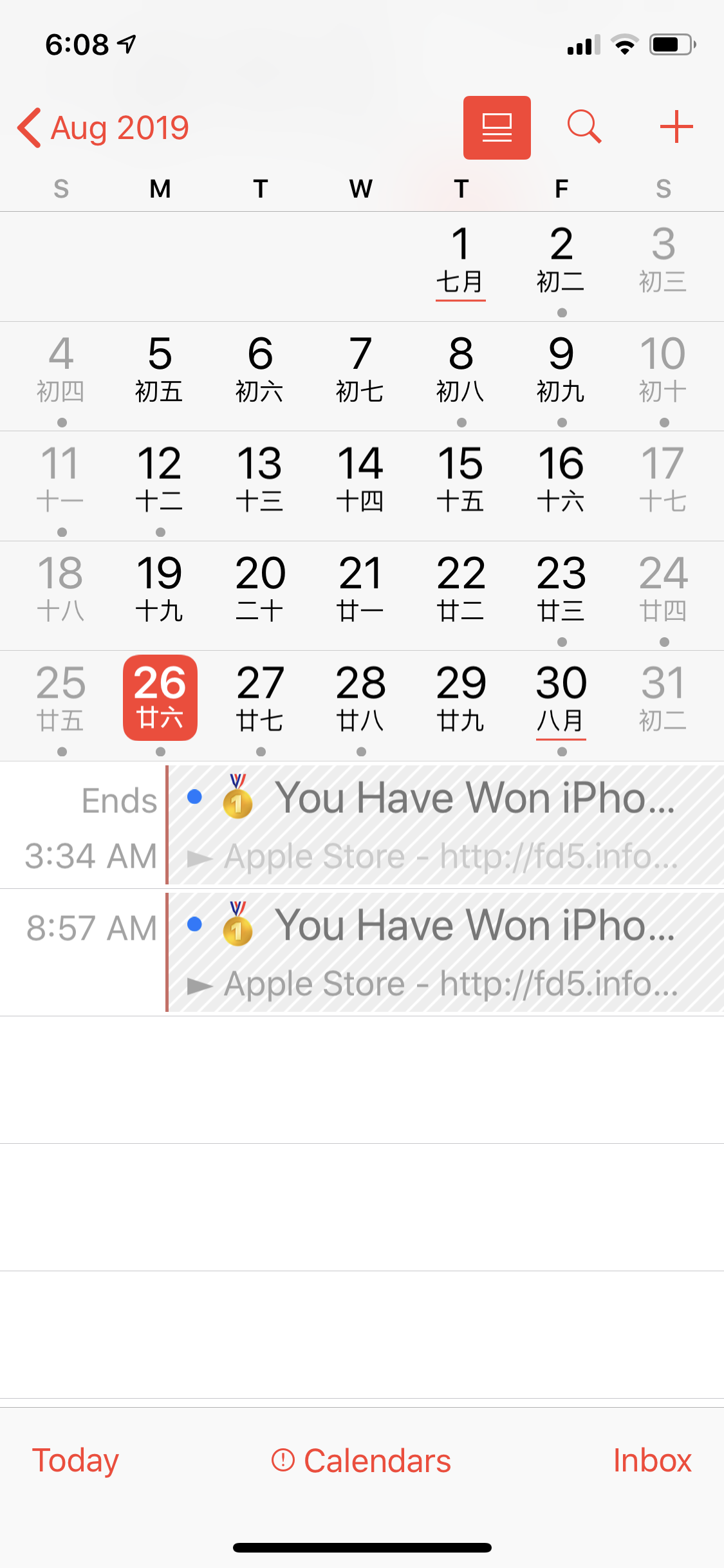 That’s a scam always showing we have won an iPhone from Apple. The ads comes from iPhone’s Calendar app. But I don’t believe it is true. Can someone from Apple please investigate and remove it away.