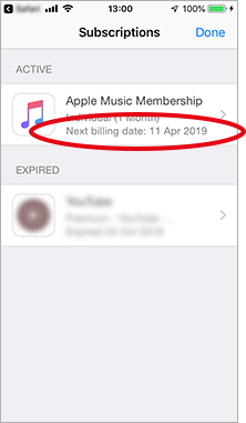 The Apple Music Student subscription will need monthly payments, on the same day of the month as the subscription was started. For active subscriptions, the next billing date can be found in the subscriptions overview, on her iPhone or on her computer with iTunes.