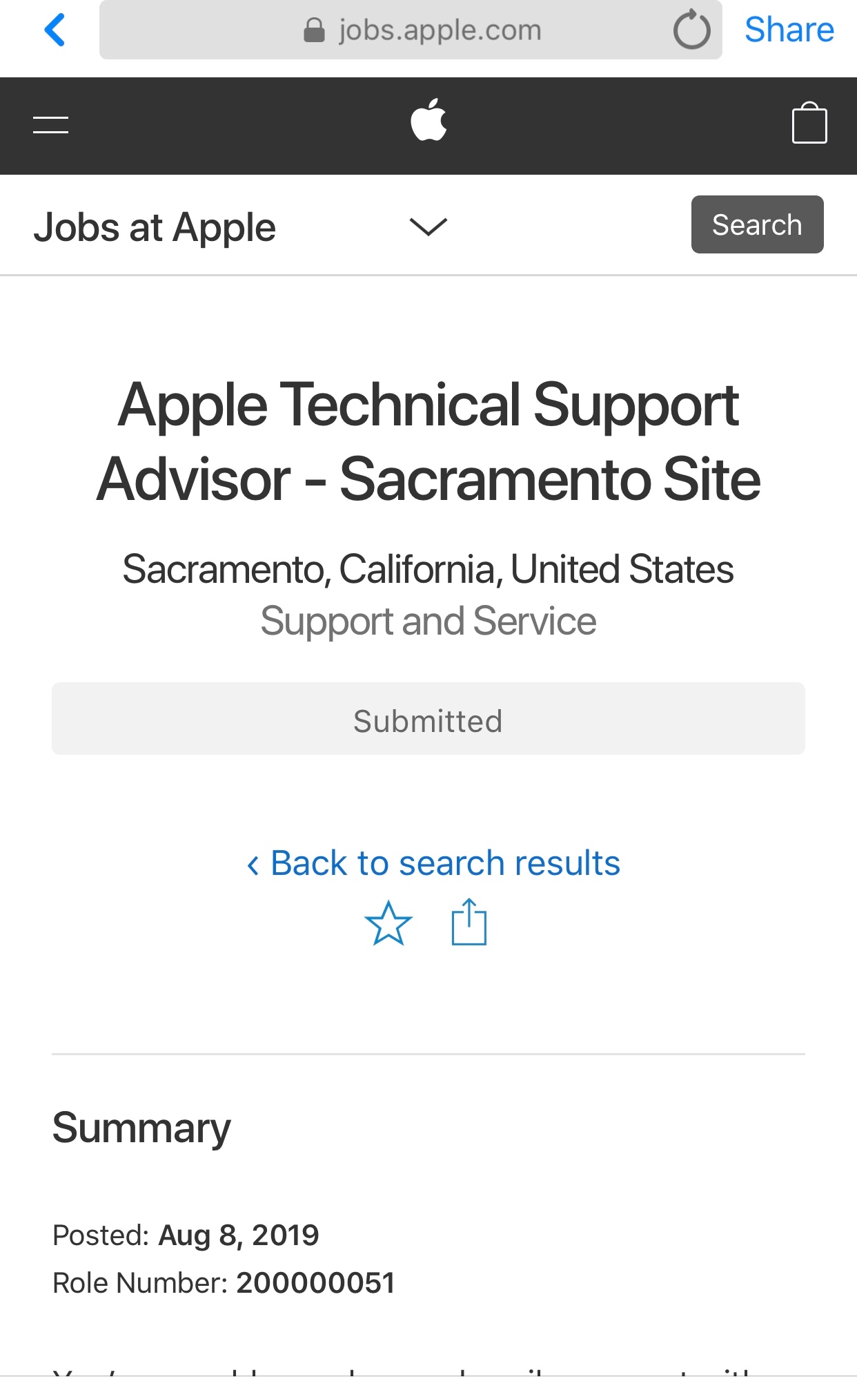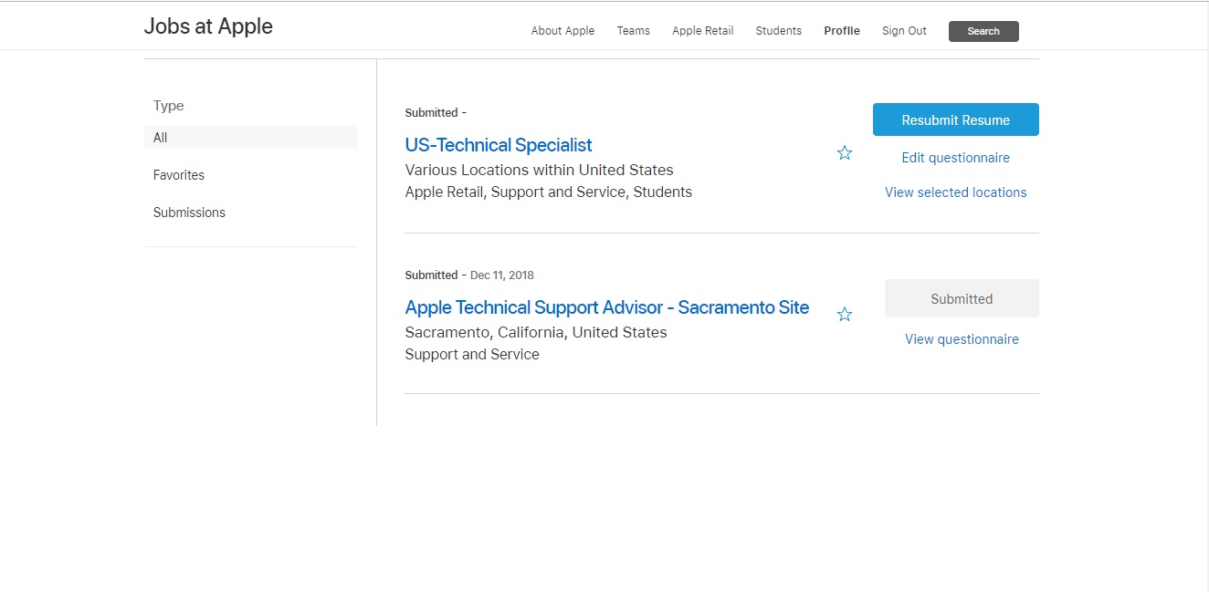 I applied for the position of Apple Technical Support Adviser on Dec 11th 2018. Now I see the same position is announce again. When I click on submit. It asks for my apple credentials and when I get in, the button "submitted" shows up.