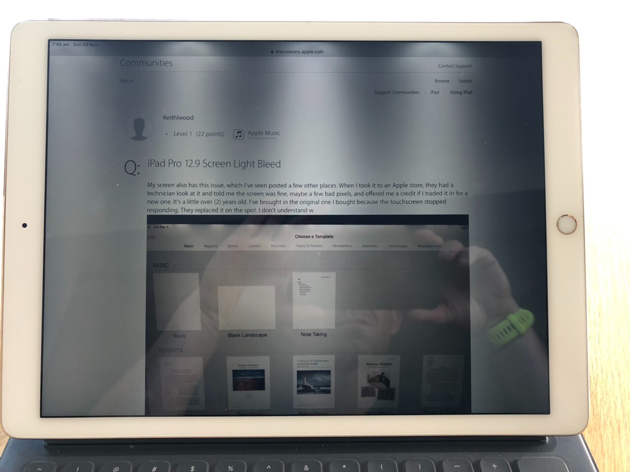 My screen also has this issue, which I've seen posted a few other places. When I took it to an Apple store, they had a technician look at it and told me the screen was fine, maybe a few bad pixels, and offered me a credit if I traded it in for a new one. It's a little over (2) years old. I've brought in the original one I bought because the touchscreen stopped responding. They replaced it on the spot. I don't understand why they're giving me the run around this time.