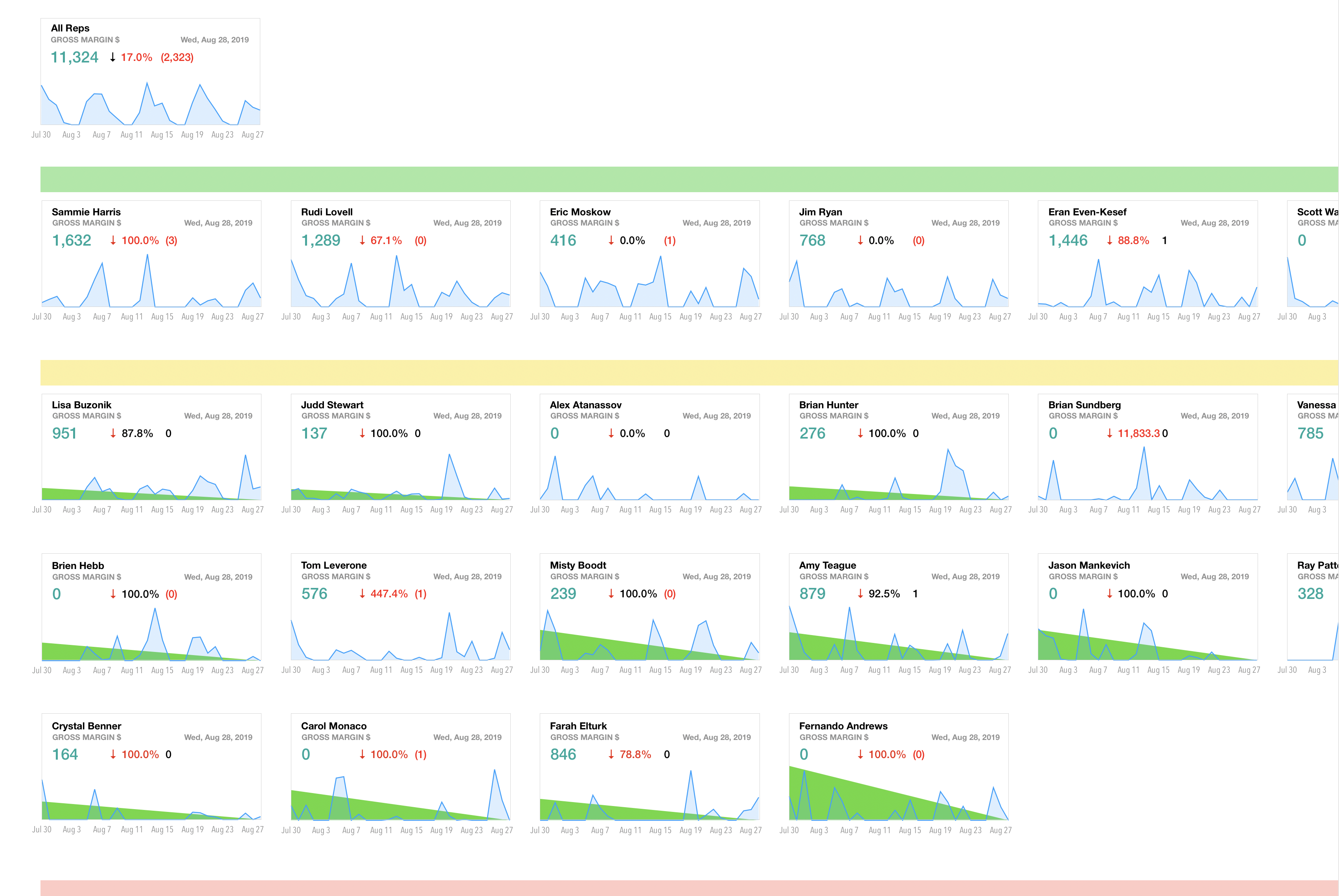 First Tab: Daily All Reps Gross The date of all charts is driven by the green shaded date cell in Table PBC Daily. When I enter August 30, there are no green triangles. When I change the date to August 28, I get the green triangles. Does anyone know what cause this to happen?