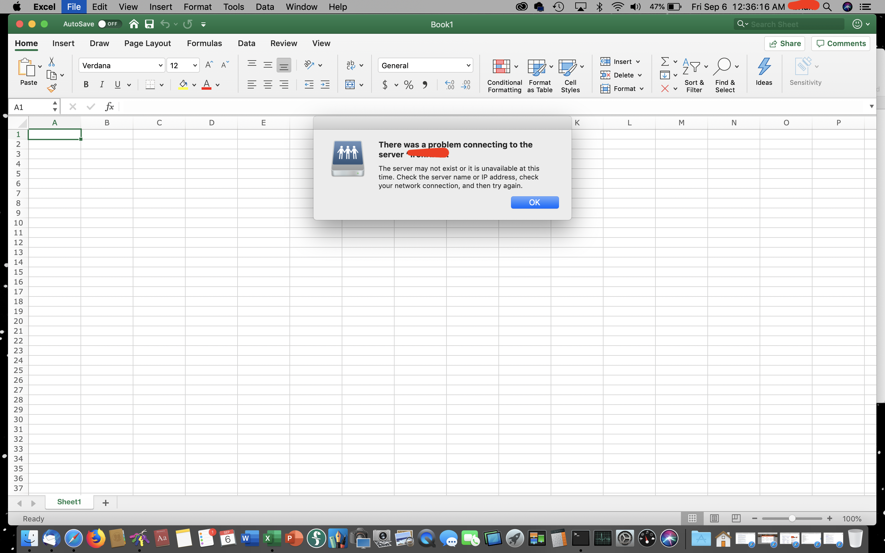 'There was a problem connecting to the server "…"' Alert Whenever I Open Excel