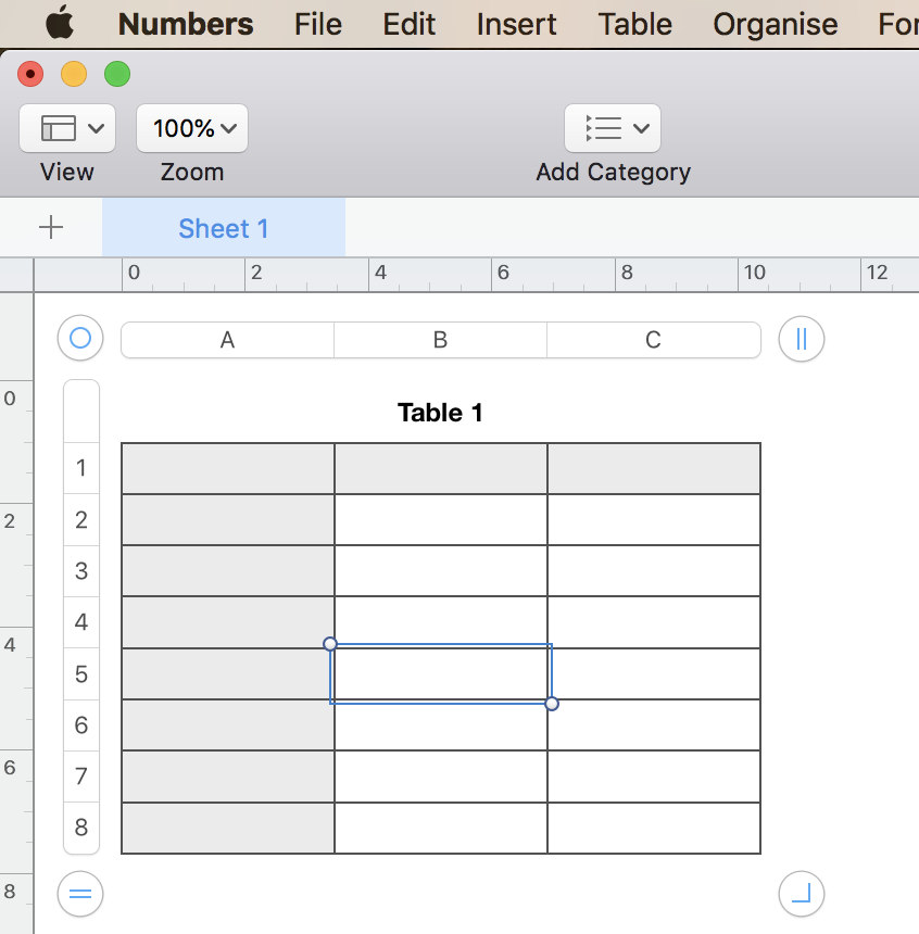 In Numbers, each of our tables is on a sheet and can be dragged around on that sheet. If your table has been dragged upward off the sheet it will display as you describe.