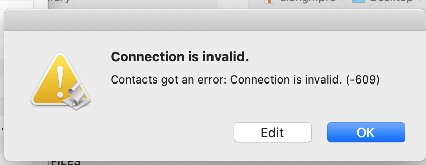 Connnection is invalid -609
