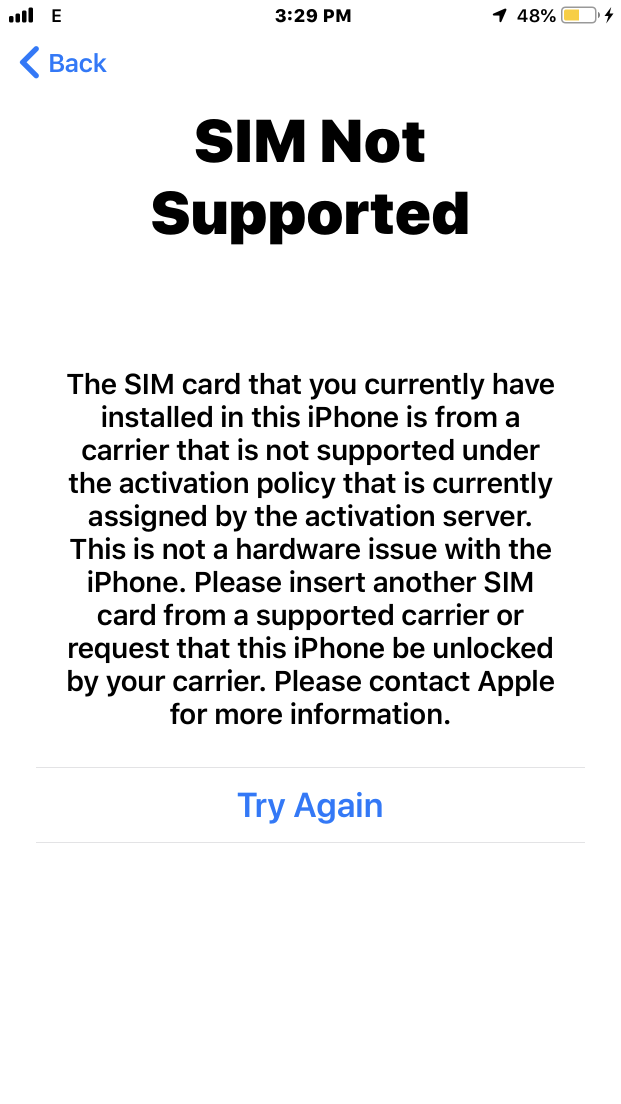 Having a hard time getting mint mobile on my iPhone 8plus. See message below help!!!!