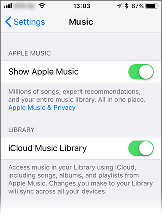 If you can’t see iCloud Music Library on your iPhone, iPad, or iPod touch