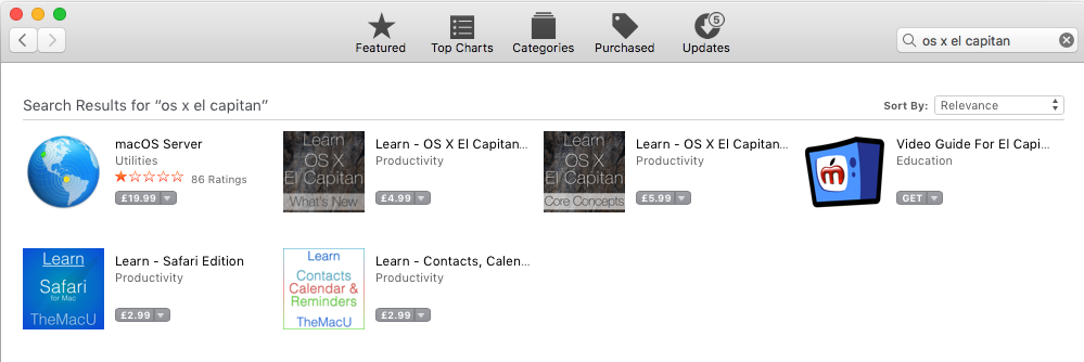 ps: Oddly on the App Store on my OS 10.12.6 Macbook Pro, I can't find the El Capitan installer...