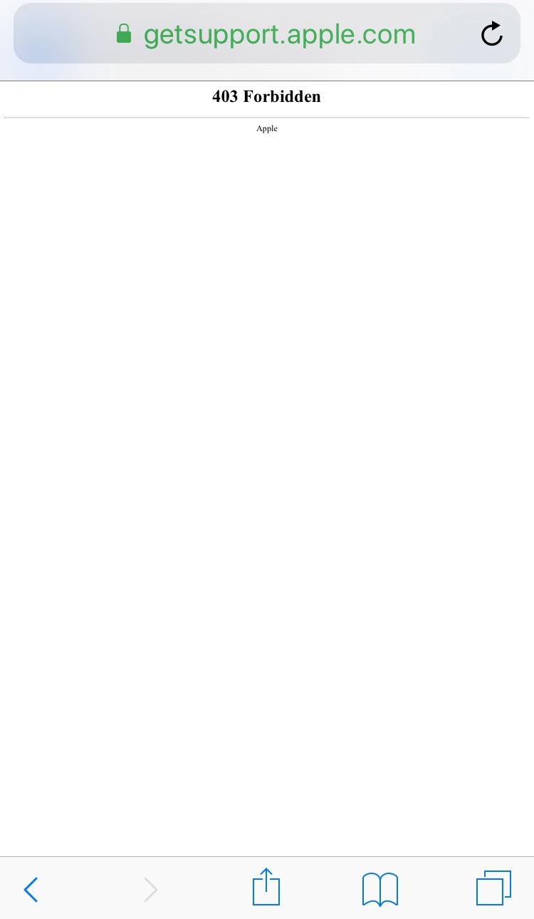 I keep getting this error: 403 Forbidden - Apple Get Support