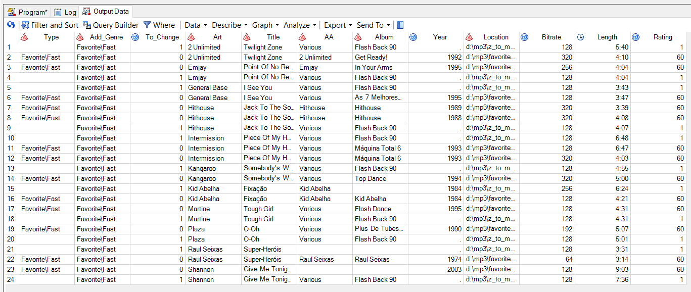 That is my itunes music db exported from itunes to an Excel file and then imported into a table in SAS.