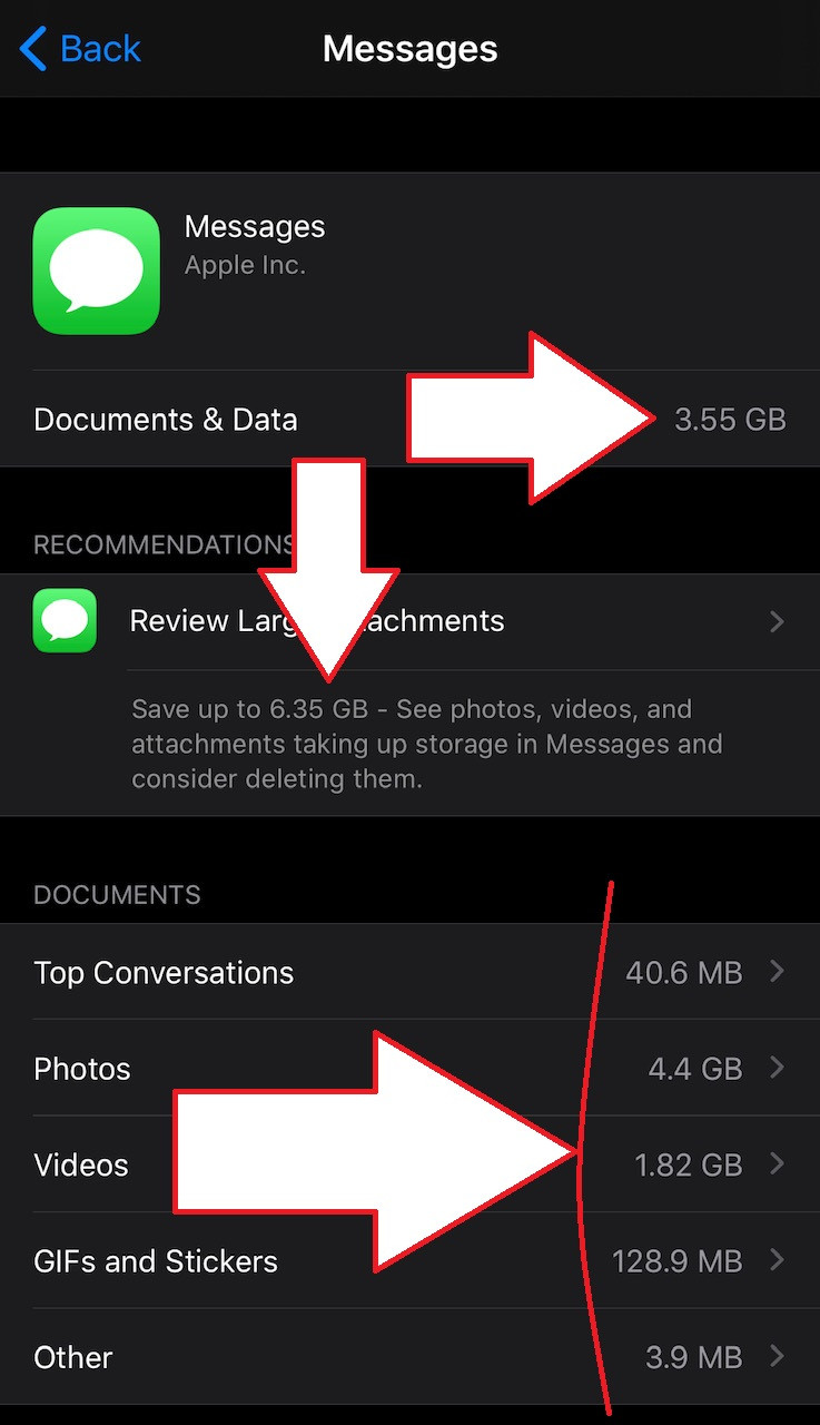 I see: Messages: 3.55 GB but I have 13 GB in the cloud.