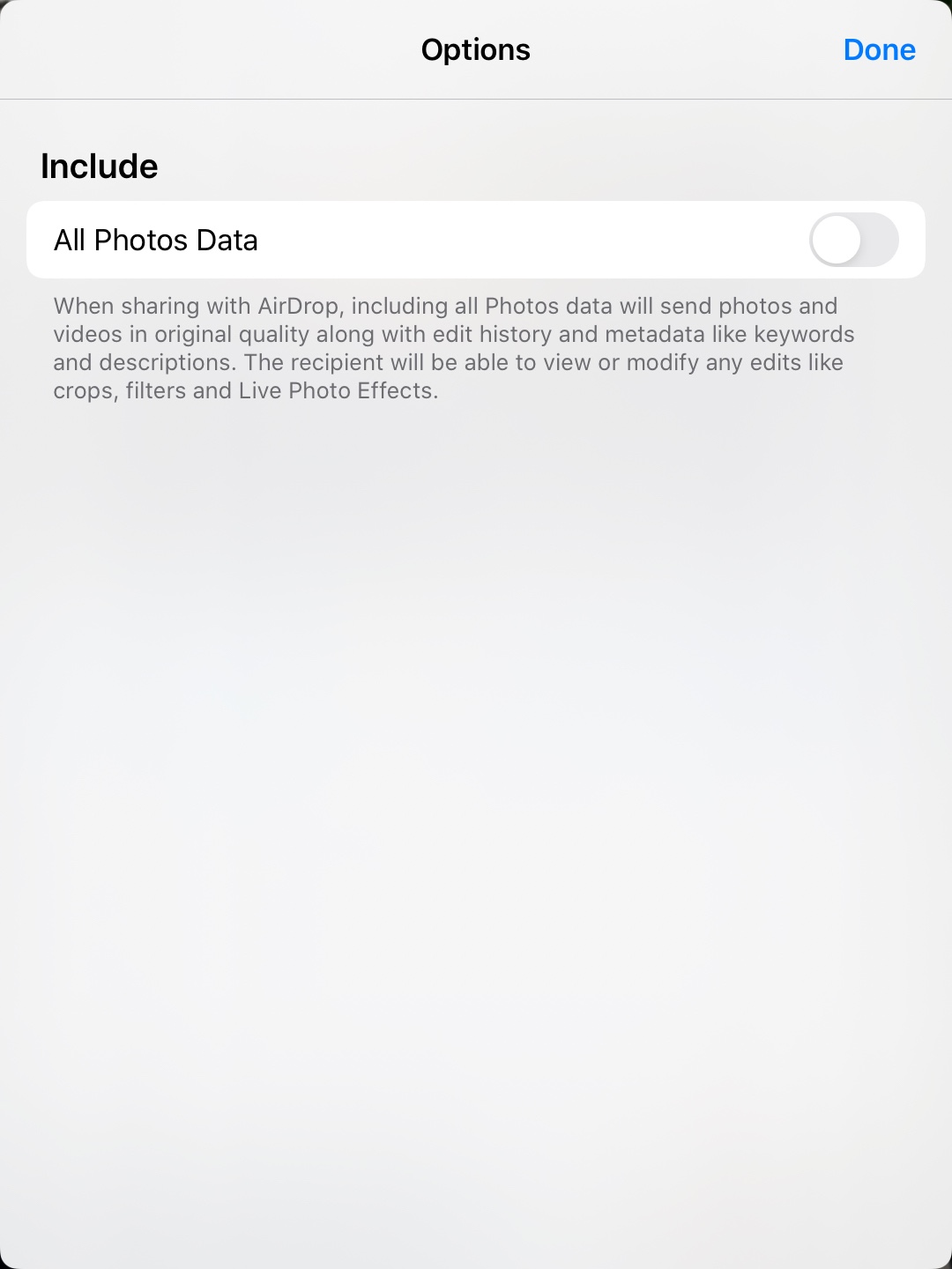 Will AirDrop still re encode the clip if you turn on “All Photos Data” ?