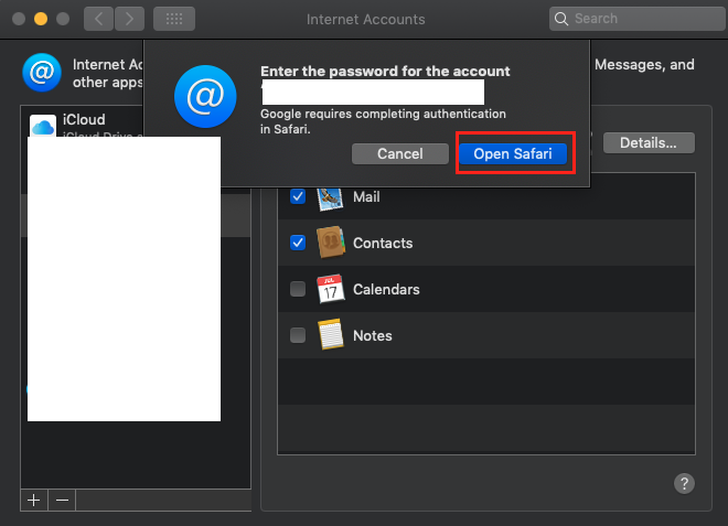 I experienced the same problem, not with Gmail, which I don't use, but with Google Calendar. The problem occurred when or after I upgraded from macOS 10.13.6 to 10.14.6 over this past weekend. Everything was running fine in 10.13.6, Calendar was happily accessing my Google Calendar without clamoring for authorization ... and it was running Safari 13, albeit probably a version for High Sierra. After the upgrade of macOS I distinctly remember having to approve the update of Safari. I didn't notice until a day after updating Safari that I had a problem with Calendar accessing the Google calendar. I don't know whether that was the case immediately after 10.14.6 was installed, or whether the Safari update caused that. If the upgrade to 10.14.6 triggered the request to complete authentication, then I should have paid more attention and attempted to do so immediately. I guess I was just too focused on completing the upgrade, incl. any software updates, before deciding what the upgrade might have broken.