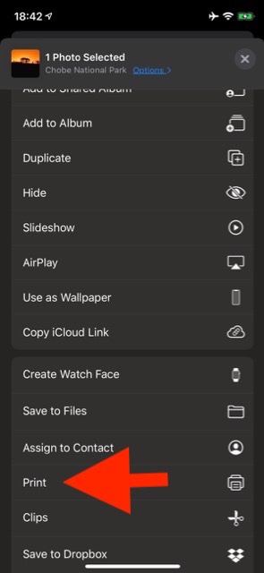 I am unable to print photos now. When I tap the share button, the print option is not there.
