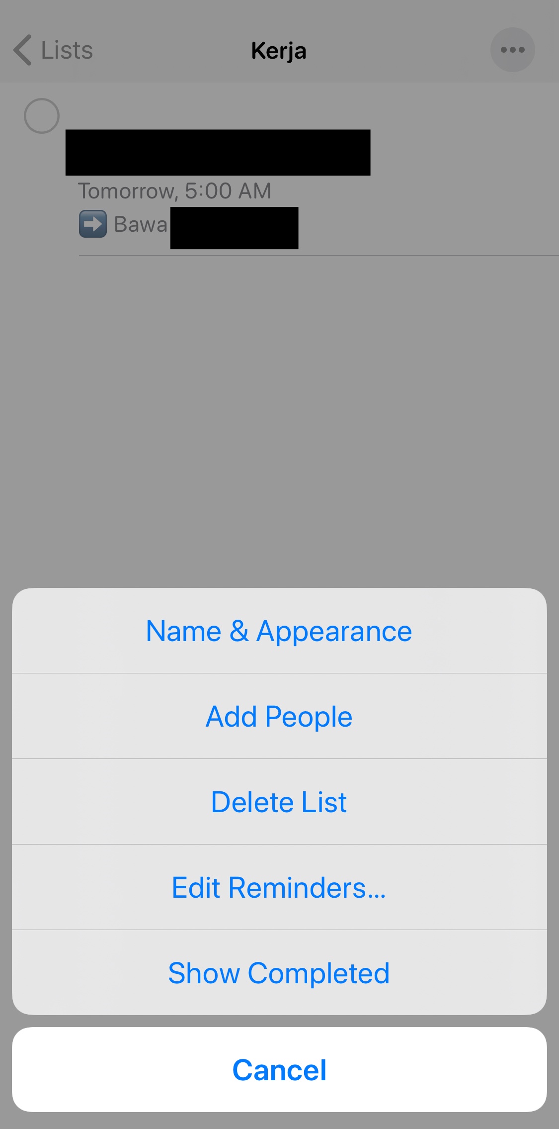 It looks like you're unable to add people to a Reminders list, and I'll be glad to see how I can help.
