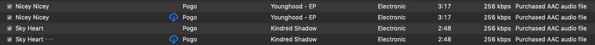 You can see that the duplicate song in iCloud has the cloud download icon next to it. When I examine the info for these files, both show as having been purchased from the iTunes store.
