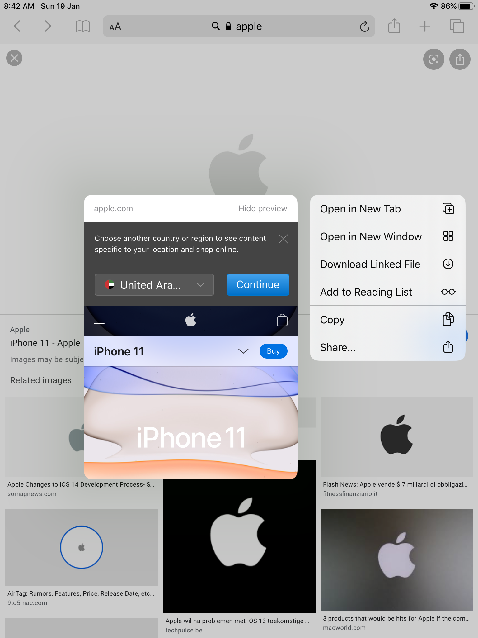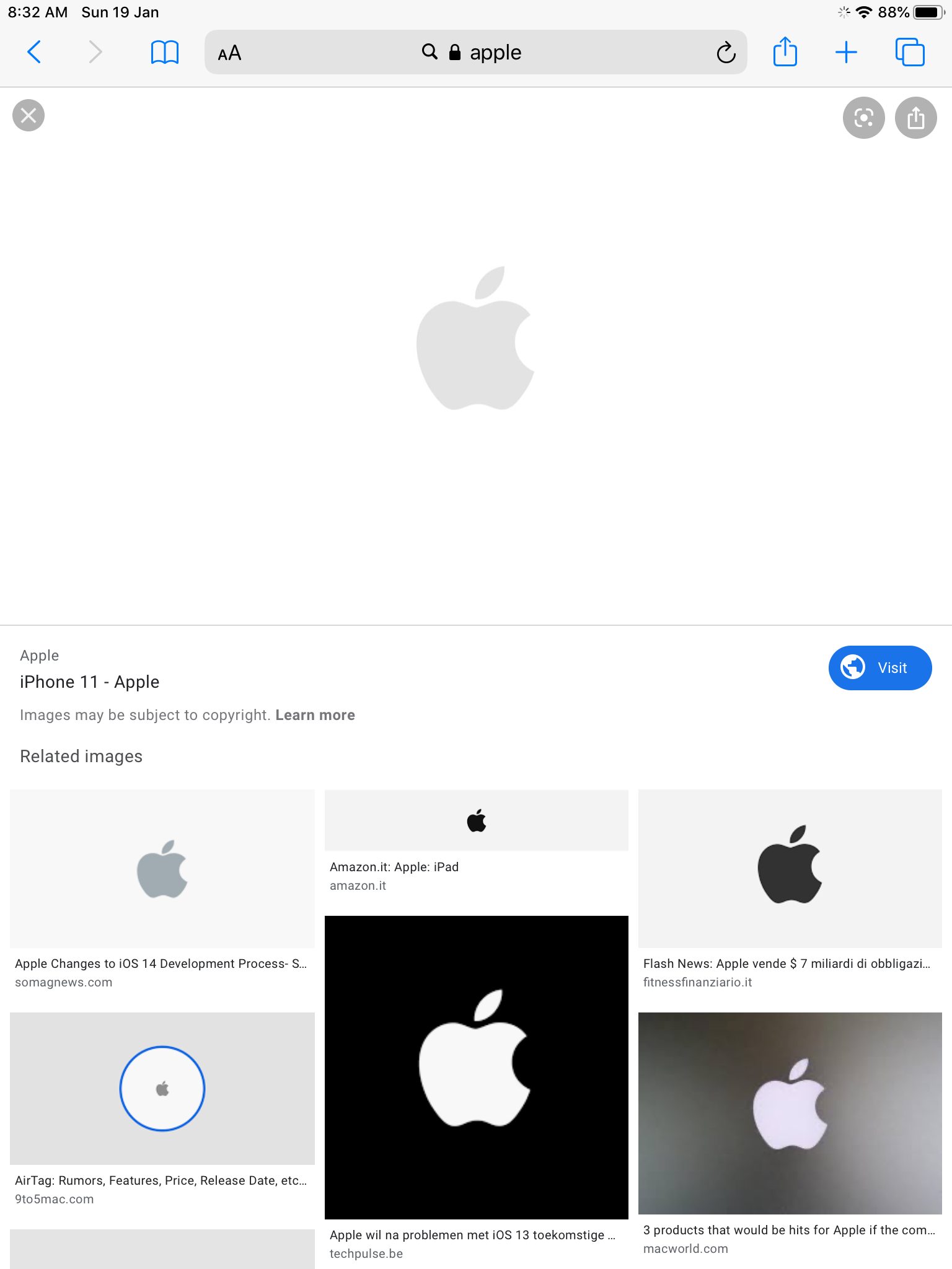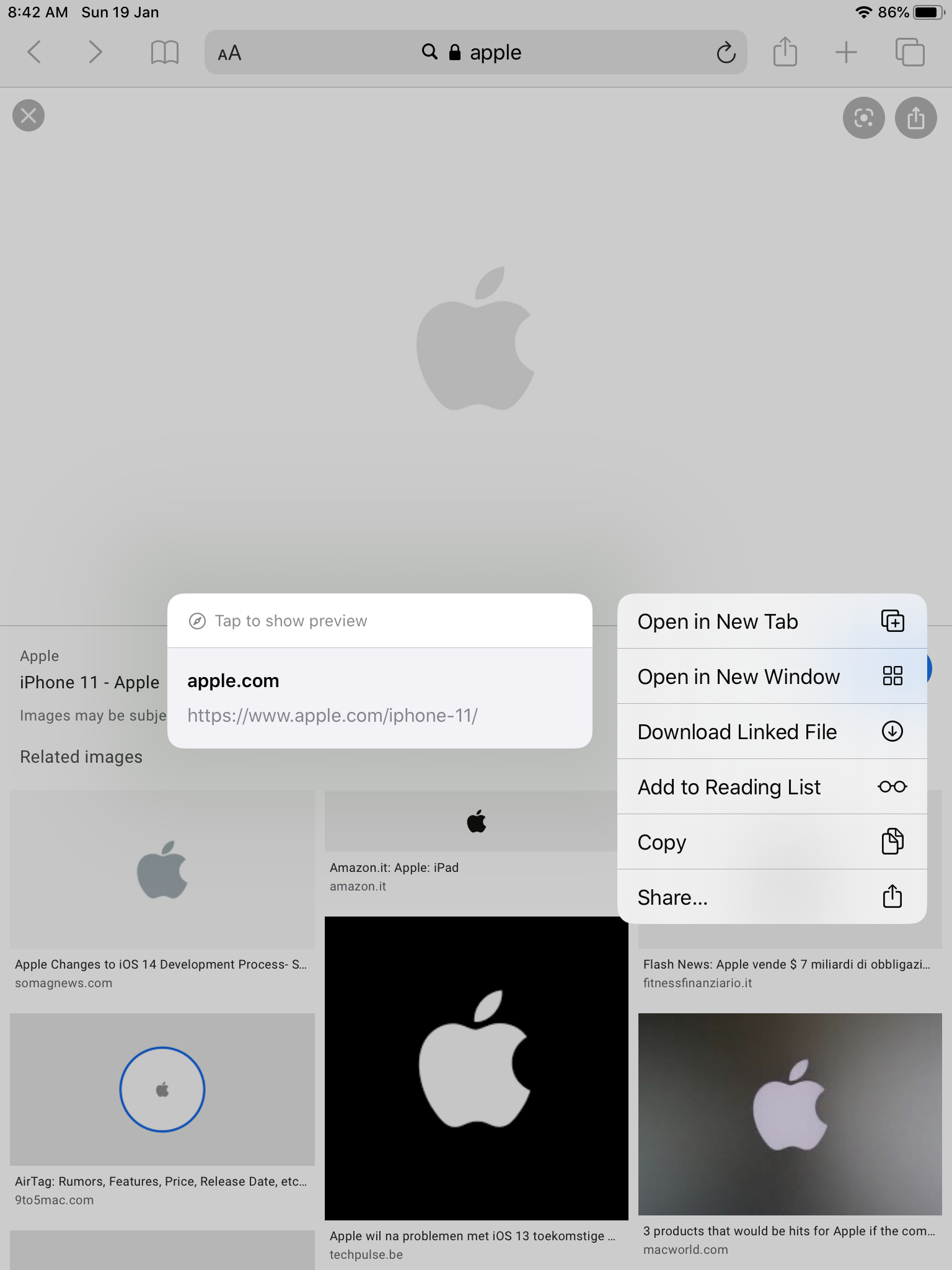 Search for something on Safari and open an image in Google images or open any web site with a link that directs you to another link.