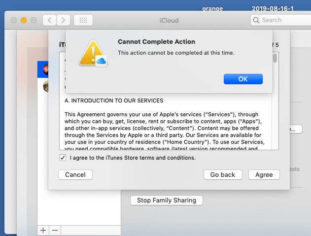 Trying to create Apple ID for daughter, I get "Cannot Complete Action" error
