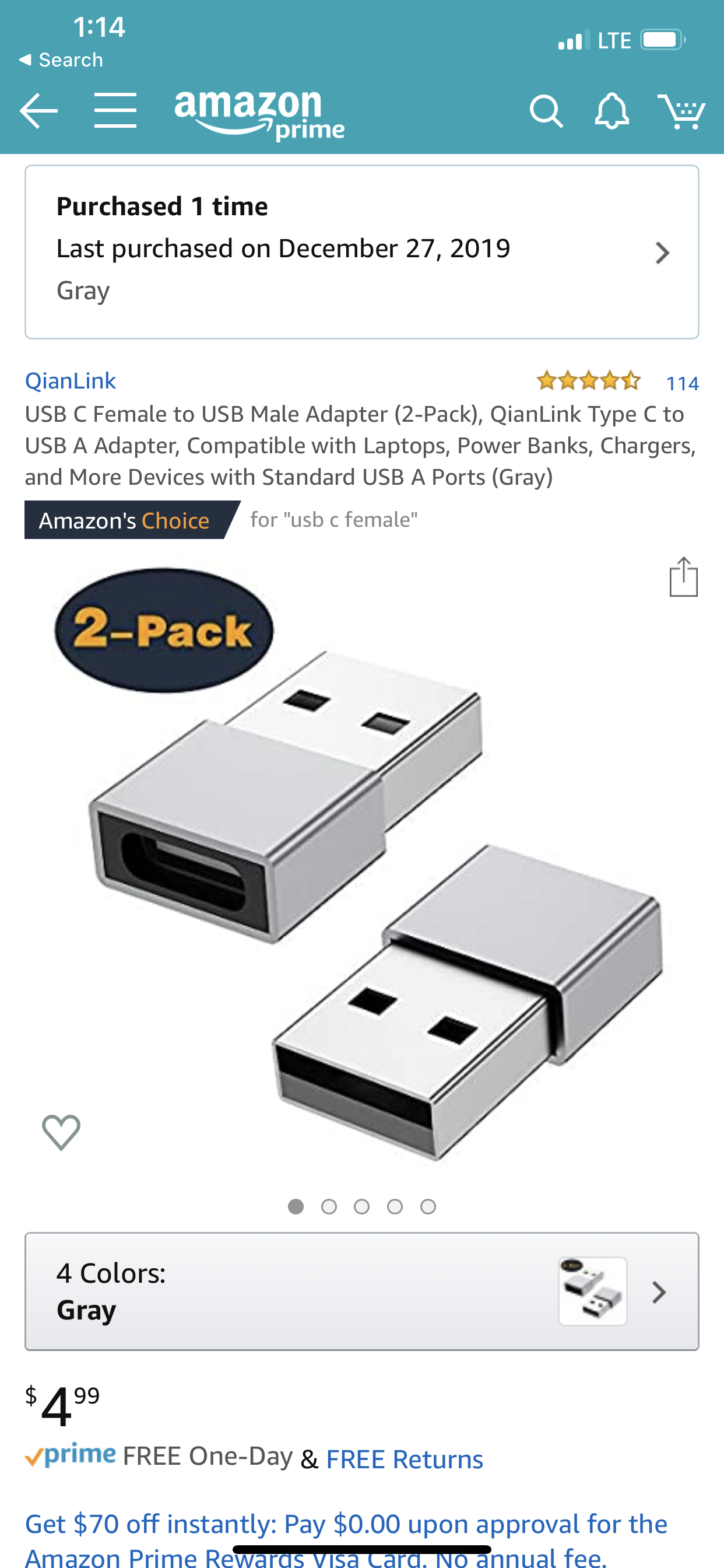 USB C Female to USB Male Adapter (2-Pack), QianLink Type C to USB A Adapter, Compatible with Laptops, Power Banks, Chargers, and More Devices with Standard USB A Ports (Gray) https://www.amazon.com/dp/B07S617LN1/ref=cm_sw_r_cp_api_i_eDrcEbB81AMP4