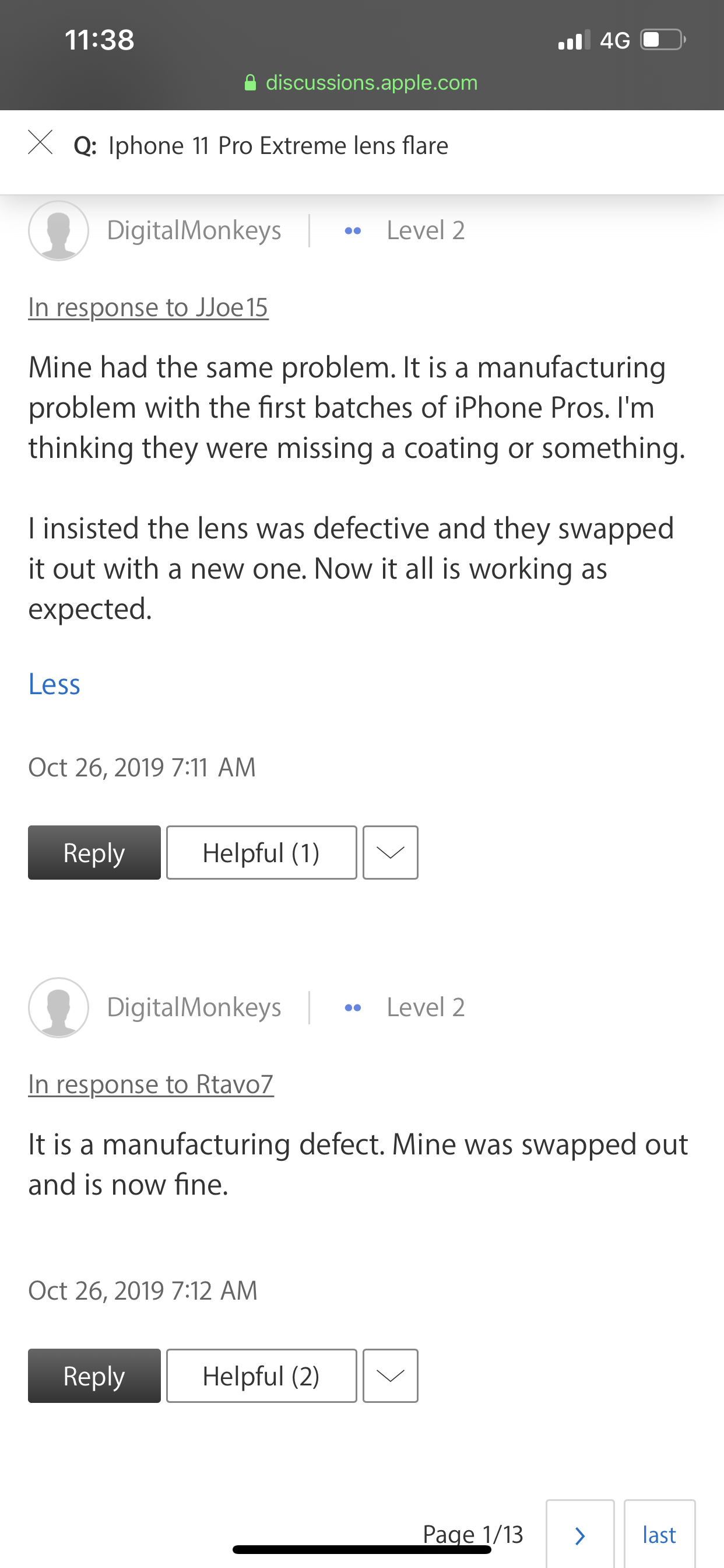 I think it's funny that we're all trying to find out what's wrong with our phones. I was thinking it was The lack of anti reflective material in the lens. I've heard that it's a reflection of the sensor, but I think it's not up to us. It's up to Apple is the brand to fix it and correct it. This is a $1200 phone, they advertise the cameras being perfect but they're not. This is my iPhone 11 Pro Max photos, this is not normal. They also said it was the software, but they updated it. https://youtu.be/HAUb-gKR34A
