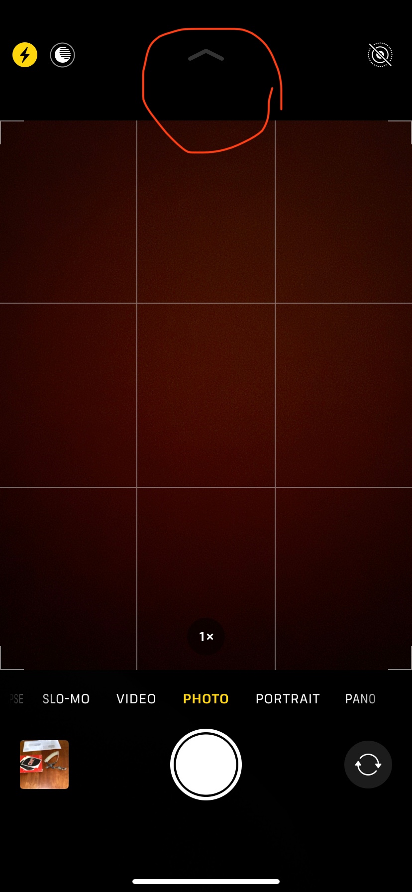 Simpler: tap on the chevron at the top of your picture frame to reveal the additional settings below (flash, night mode, aspect ratio, filters, etc.)