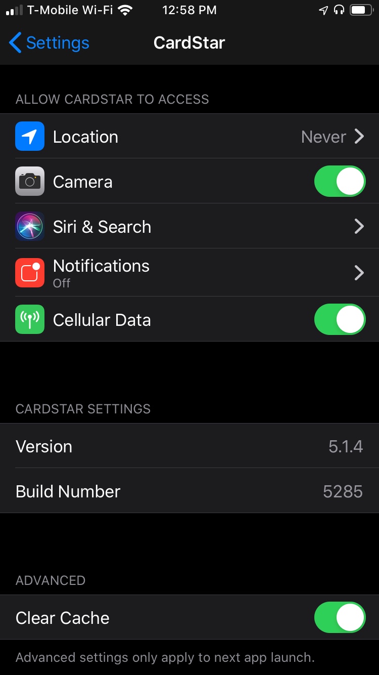 Cardstar app will not open since my upgrade to ios 13.1.1