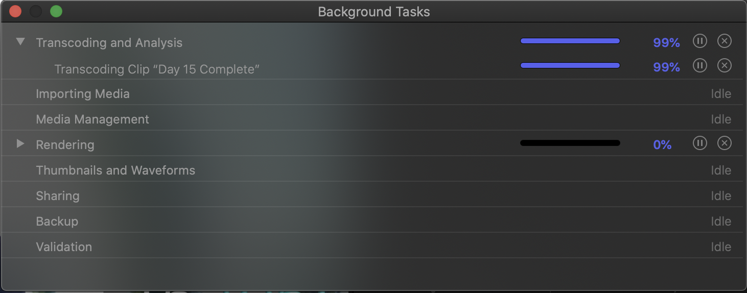 Sometimes it helps to delete all the render files, but then usually the problem just occurs elsewhere.In fact! After I took the screenshot and while I wrote this post, this project was rendering, as you can see. When I returned to the FCPX window, the problem was gone! I guess that glitch is a leftover from when I last had the project open, which was before I last cleared the render files.