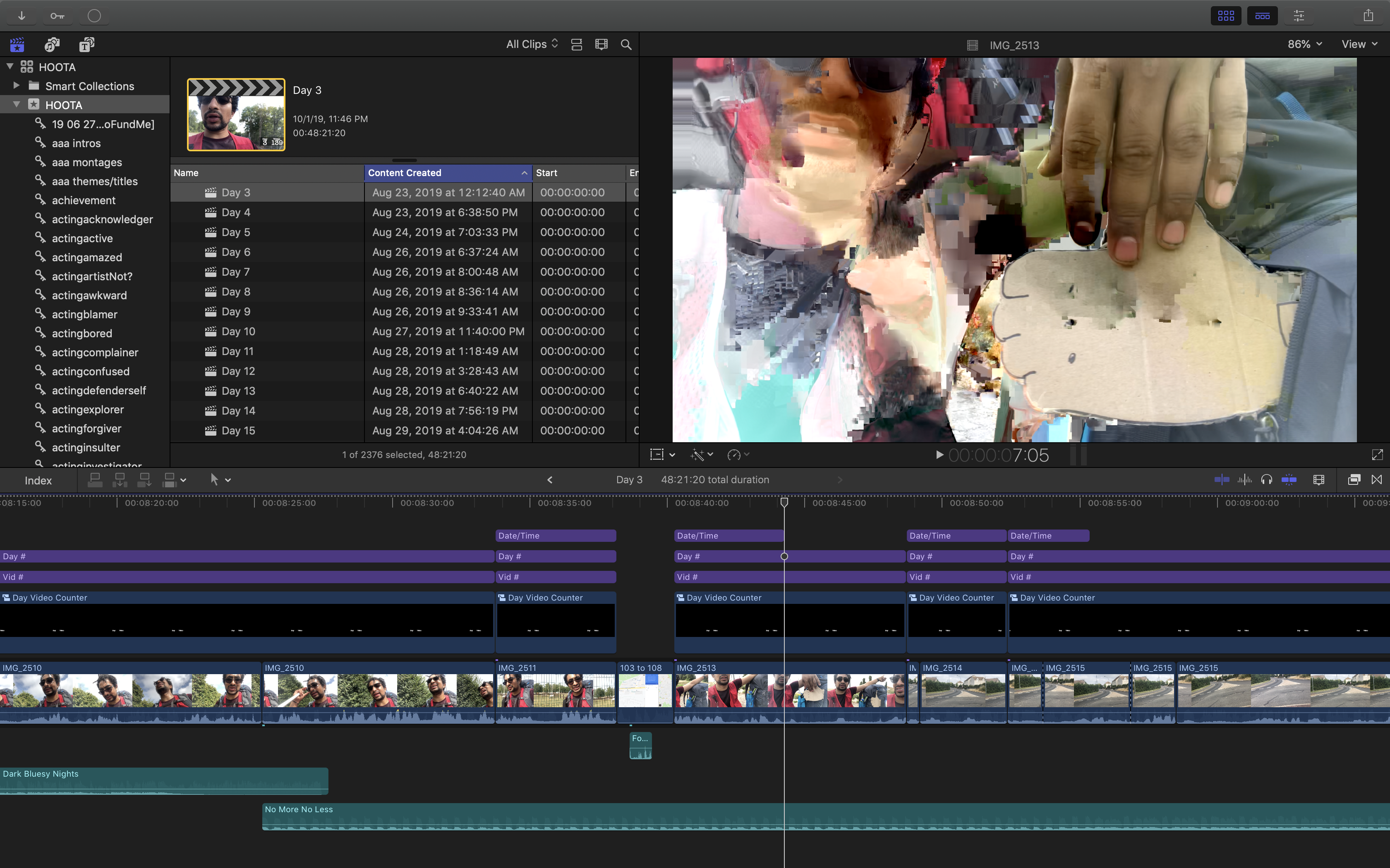 What is causing the random glitches in my Optimized/Original Timeline footage?