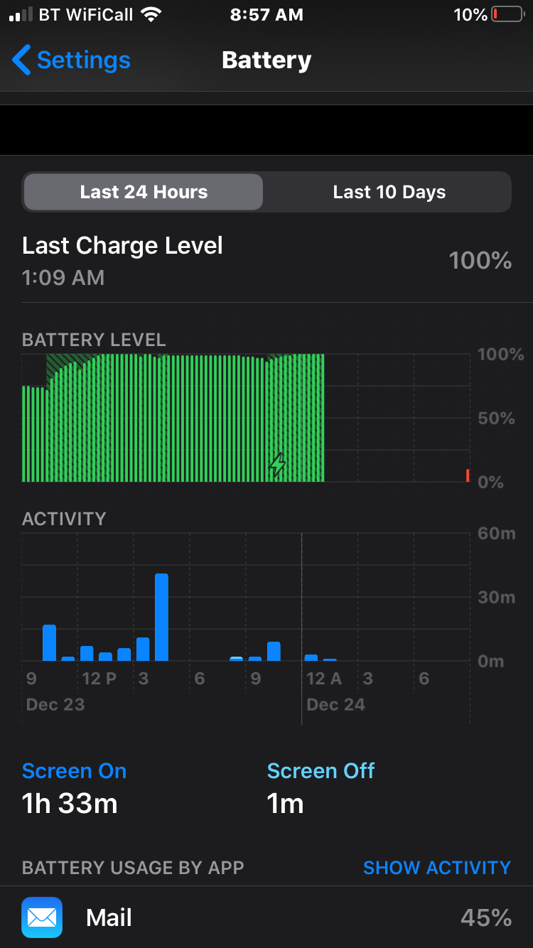 About mid-day I checked Battery and saw that Siri had used up >60% of my battery and the charge was down to about 30%.