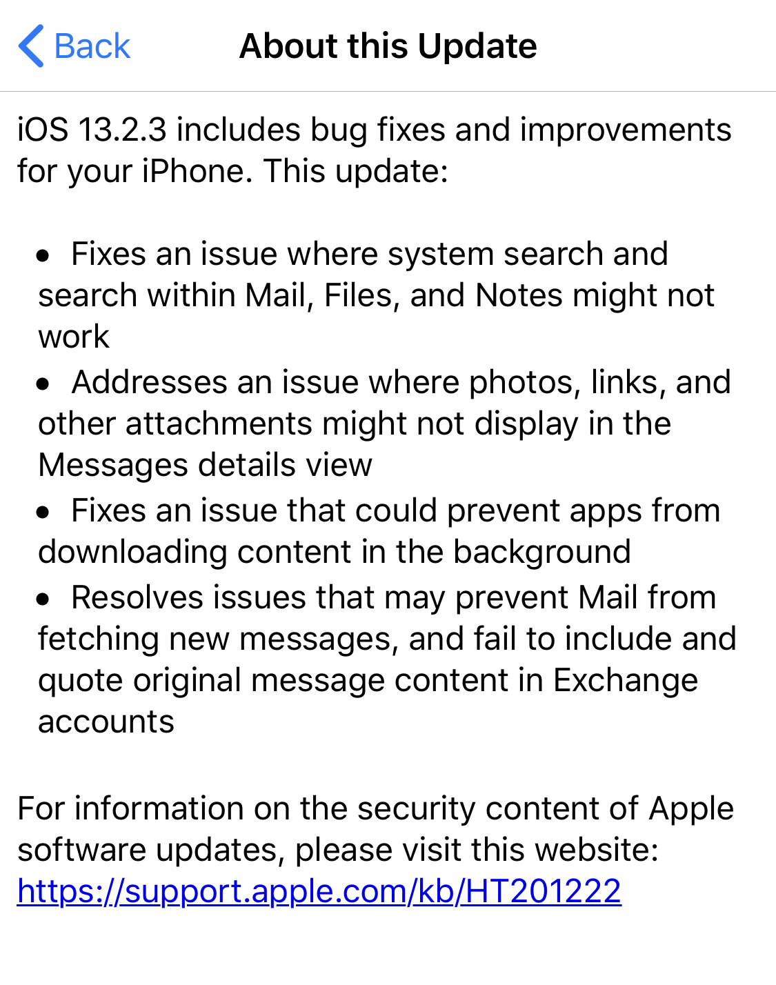In the end, however, you have to put yourself in the shoes of an Apple Engineer: it's hard to fix something that's hard to reproduce. Perhaps you'd like to sacrifice your iPhone and personal data to allow an engineer to study this issue? Exactly. Not many people are willing offer up their devices and account access as a specimen for study. So, they have to try and reproduce this issue from scratch. It is frustrating for sure, particularly because the Mail app worked just fine in iOS 12. I expect that the Engineers are systematically combing through changes between iOS 12 and iOS 13's Mail app, targeting possible flaws, and crossing their fingers after each subsequent update.