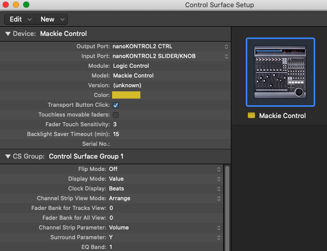Korg nanoKontrol2 and Logic Pro 10.4.7