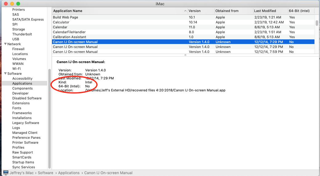 Before you upgrade to OSX Catalina, if you go to: About this mac / System Report / applications