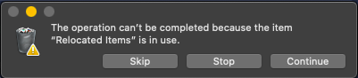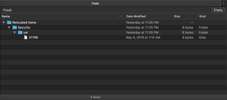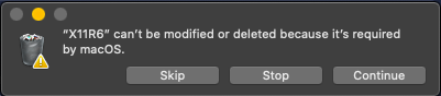 Once you have upgraded to Catalina, with XQuartz in place, you get this underlying relocated items issue.